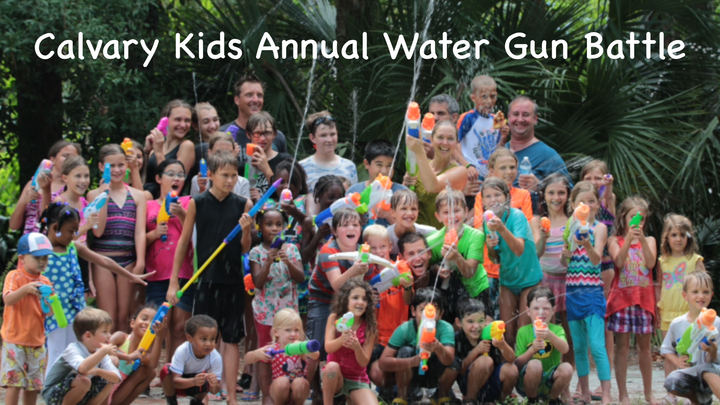 Calvary Kids Annual water gun battle. This is a super fun family event held at Charles Park. No drop offs. For all Calvary Kids and their parents! There will be food, fun, fellowship. There will be a waterslide for the kids. Also, Kona ice and pizza for the kids.